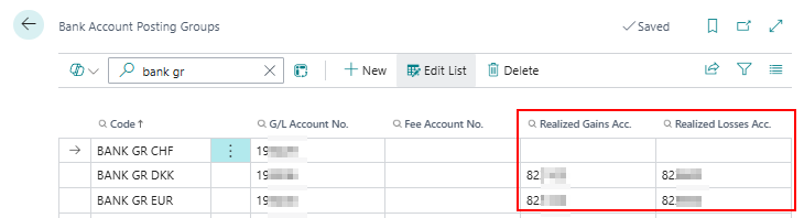 In Bank Account Posting Groups you find two new columns Realized Gains Acc. and Realized Losses Acc.. If GL Account is added in these two columns currency adjustment will post on these GL Accounts otherwise it will post as BC standard on GL Accounts than is set up in Currencies.