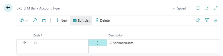 In BRC EFM Bank Account Type add Code and Description in use to group Bank Account and to be able to filter on a certain group.